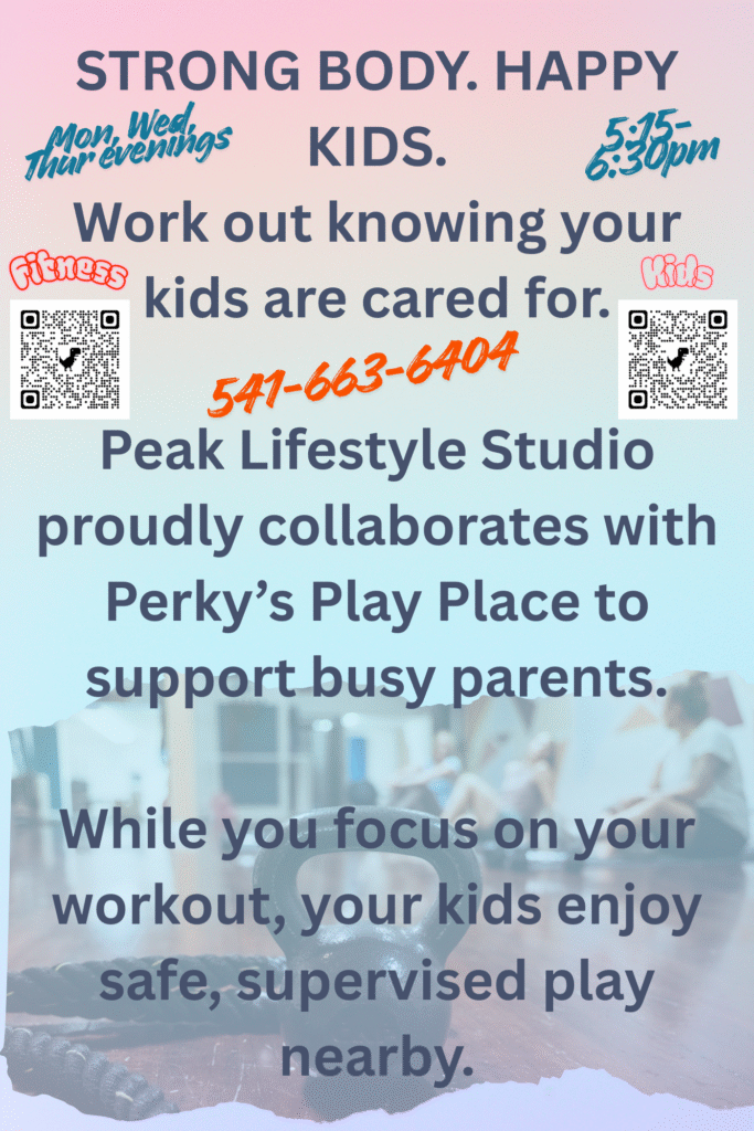 Peak Lifestyle Studio has partnered with Perky’s Play Café to make fitness more accessible for parents and caregivers. When your kids attend Perky’s ( for $10) during select hours, your Peak classes are 50% off—allowing you to focus on your workout while they enjoy a safe, engaging play environment. This offer is available Mondays, Wednesdays, and Thursdays from 5:15–6:30 PM.